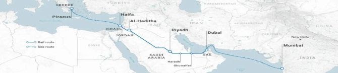 The IMEC was unveiled during the Delhi G20 summit in September 2023 by Prime Minister Narendra Modi, Saudi Crown Prince Mohammed bin Salman, and US President Joe Biden. The multimodal route was to begin in Mumbai, connect by sea to the UAE, and then continue via rail through Saudi Arabia, Jordan, and Israel, before reaching Europe through Haifa Port.