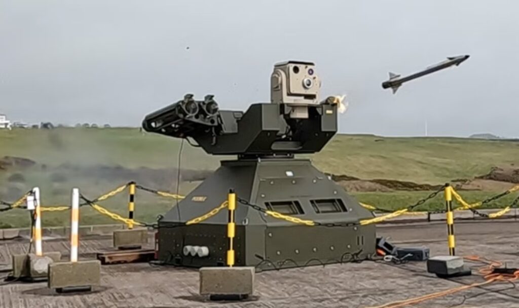 A screengrab of the ground based Rapid Sentry air defence system firing an LMM. Credit: RAF website.