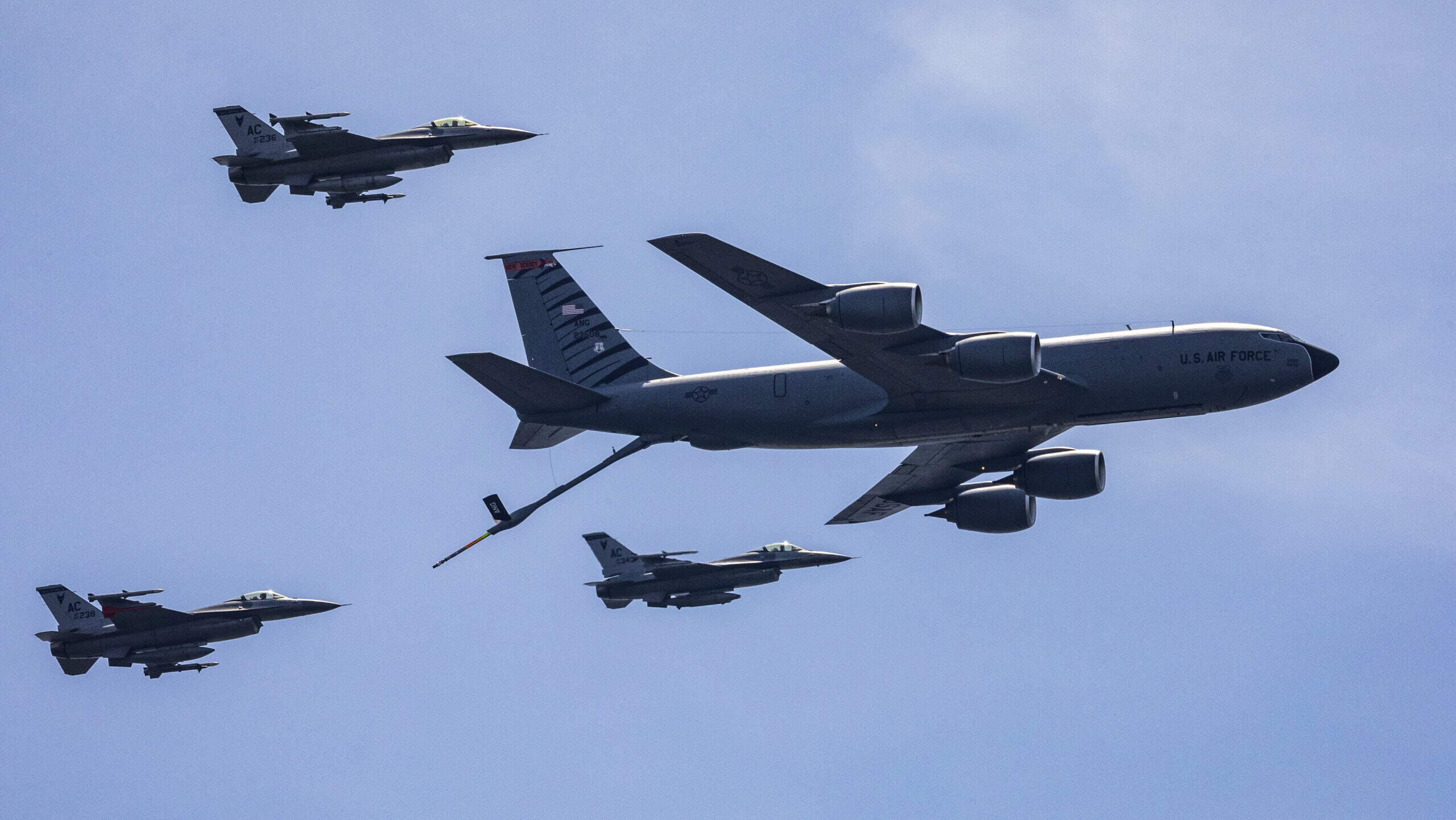 Mobility platforms like the KC-135 Stratotanker have surged to the Middle East to support ongoing operations against Tehran, providing fuel to get aircraft across the Atlantic or extending time on station for jets striking Iranian targets. The large plane, with a wingspan of 130 feet, is more vulnerable to enemy fire than newer, sophisticated jets like stealth fighters, and typically operates outside of contested environments as a result.